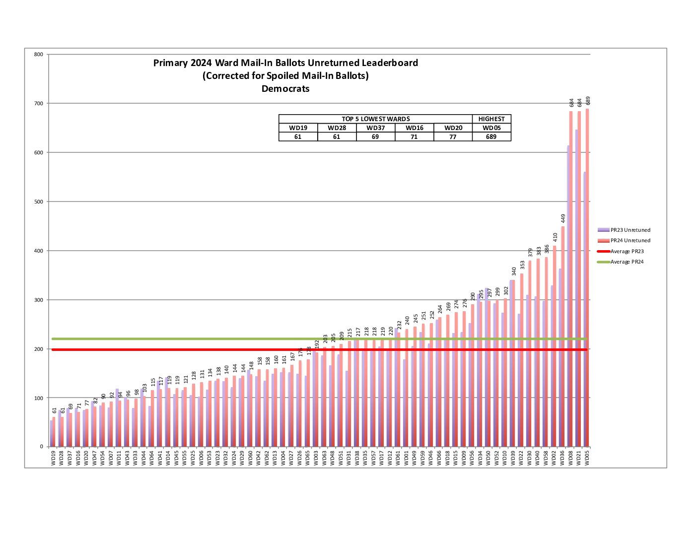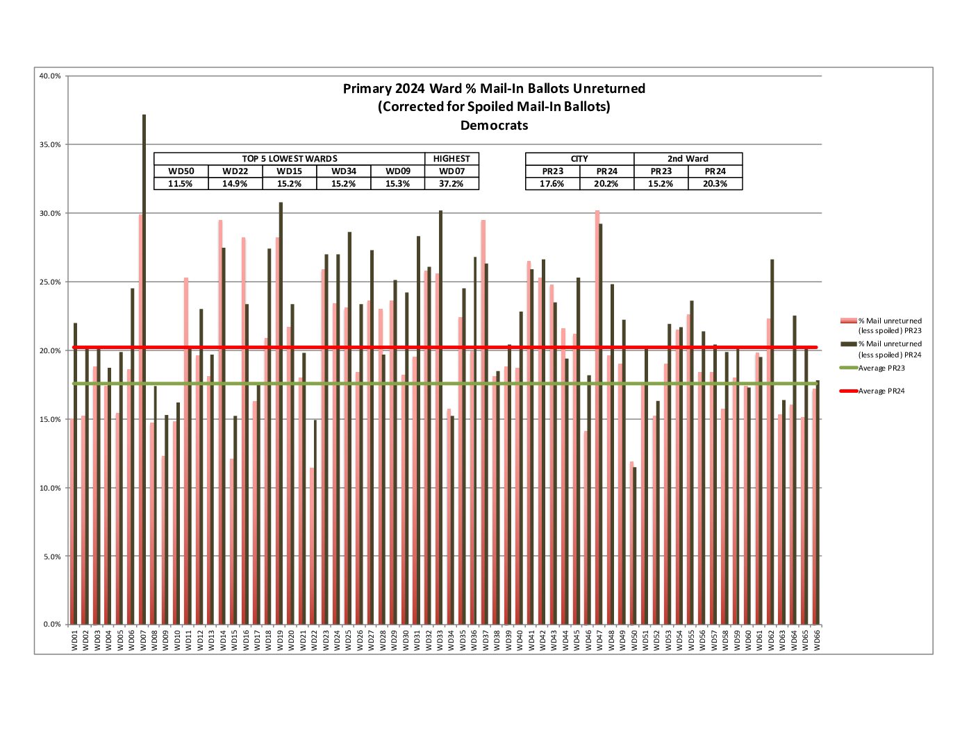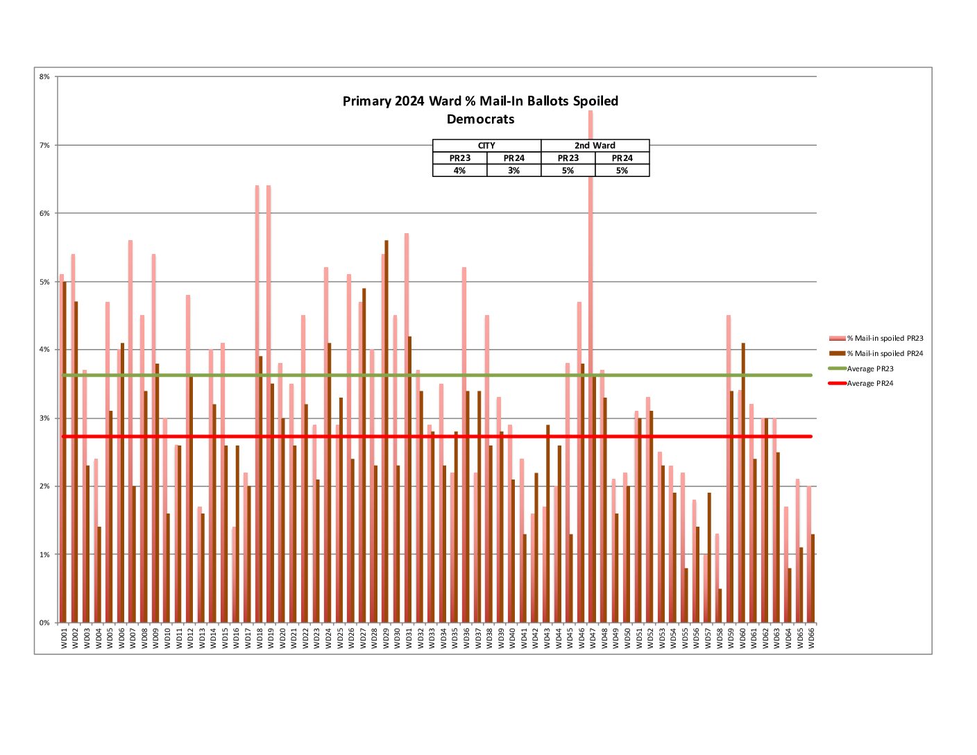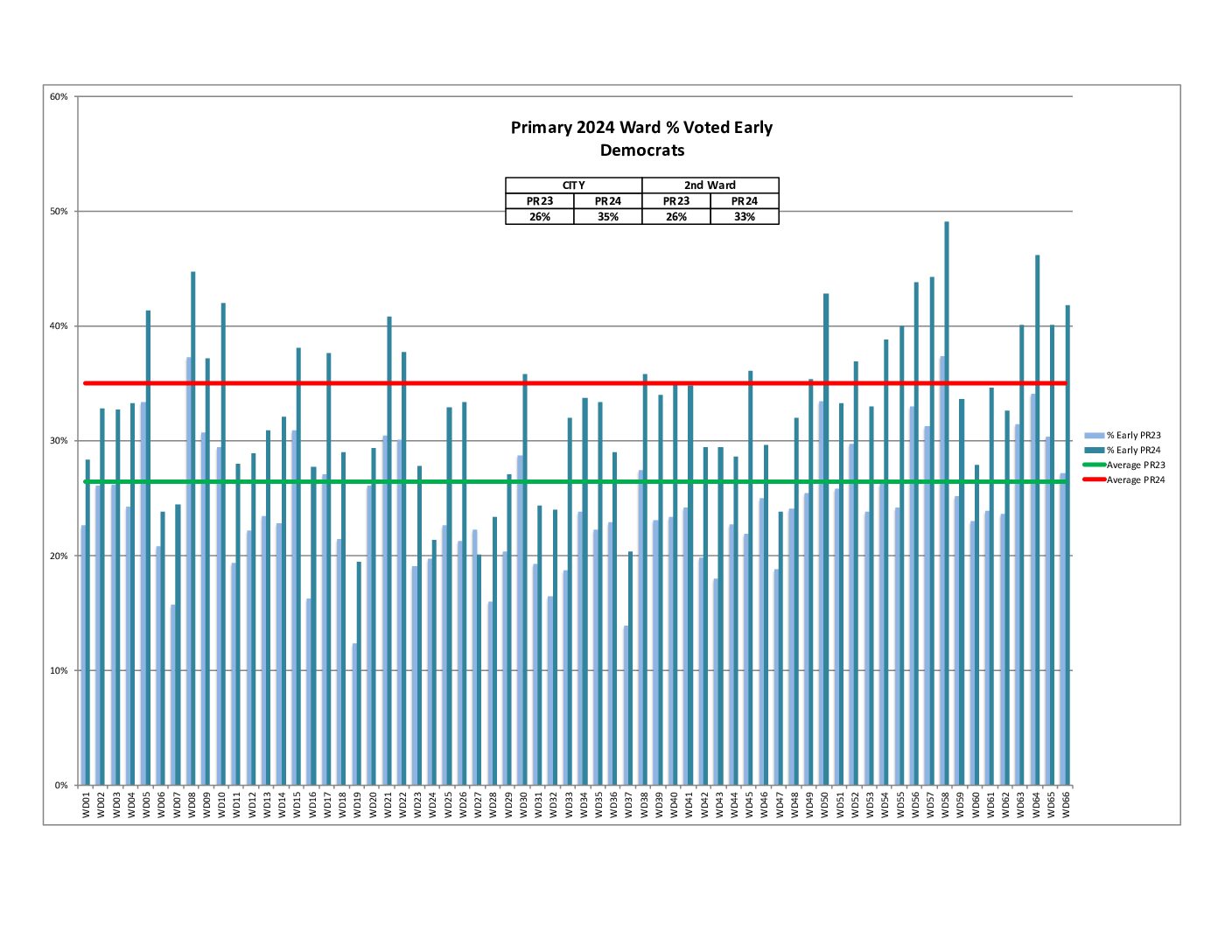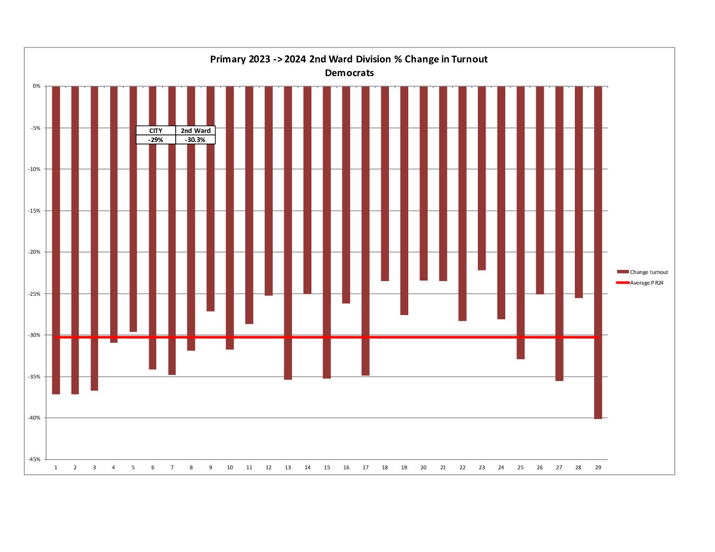 Also, both the city and 2nd Ward are showing a decrease in raw voter turnout compared to the average of 2016-2023 Primaries.