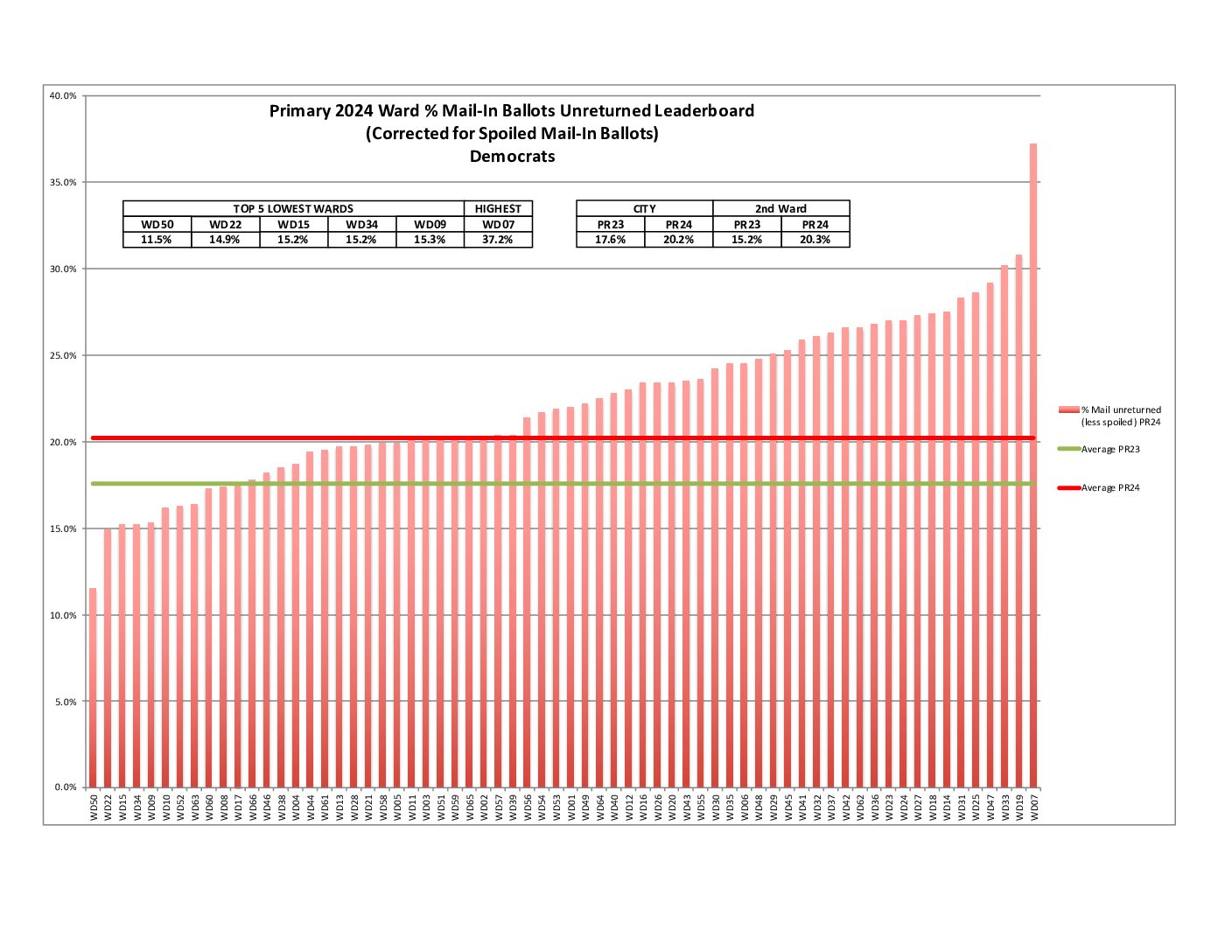 % Mail-in Ballots Unreturned Leaderboard