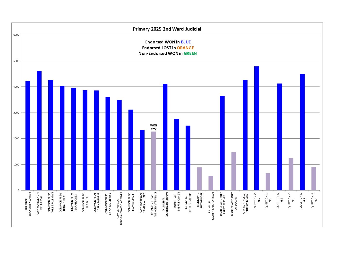 We carried all of our endorsed candidates and ballot question positions in the 2nd Ward. All of our endorsements won their respective races.