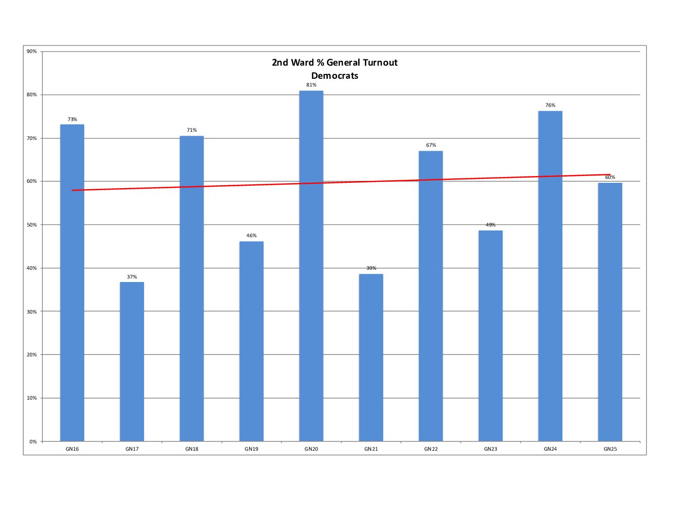 There was an increase in voter turnout, both in the 2nd Ward and in the city for the general compared to previous off-year elections.